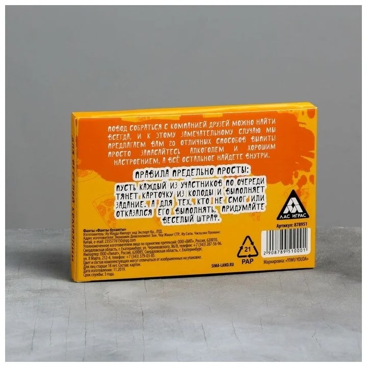 Купить игра для компании "фанты буханты" 20 карт от 100 руб. с доставкой до пункта выдачи в Новочебоксарске. Интернет магазин ДекаМаркет. Оплата при получении.